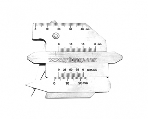 The gauge is composed of stainless steel. Can be used to obtain a wide range of measurements. This gauge consists of five major components from which measurements can be taken. They are the rotating fan, working edge, main ruler, side slide with point and center slide. Some type of measurements that can be taken include but our not limited to butt weld height, undercut, angle of preparation or bevel, gap size, leg of fillet weld throat of fillet weld and the face of the butt weld.